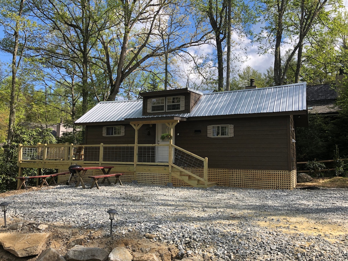 At 4000+ feet & only a 10 min walk to town on the Rhododendron Trail. Totally renovated 2017!! Light & sunny 3 bed/2 bath, 750 sq. ft. Originally built by my wife's g-grandmother in the 1940's. Floor to ceiling shiplap, 17 ft. ceilings, hardwoods, reclaimed barn wood, custom fixtures, heated marble/slate bath floors, tankless water heater, gas fireplace, porch, Wifi, TV, washer/dryer, kitchenette. Beautiful gardens! Classic Highlands charm with modern comforts! Hike, fish, shop, or relax!