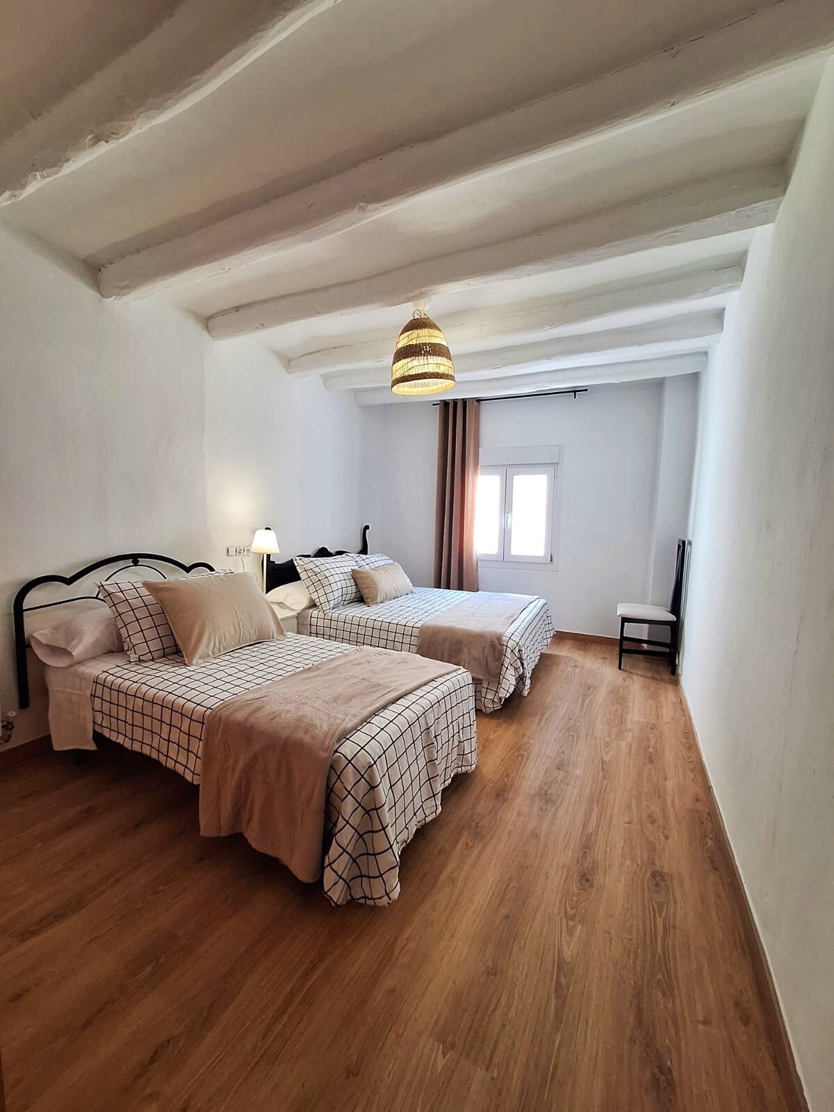 Espaciosa casa rural en la tranquila localidad de Valmuel a 10 minutos de Alcañiz y 6 km de Motorland. Dispone de parking privado y amplio patio con barbacoa. Consta de 3 habitaciones (2 de matrimonio y una doble) un baño y un aseo. Tiene calefacción y aire acondicionado. Próximo al circuito de MOTORLAND, a Alcañiz y comarca del Matarraña. En los alrededores de Valmuel podréis disfrutar de paseos, rutas en bici...