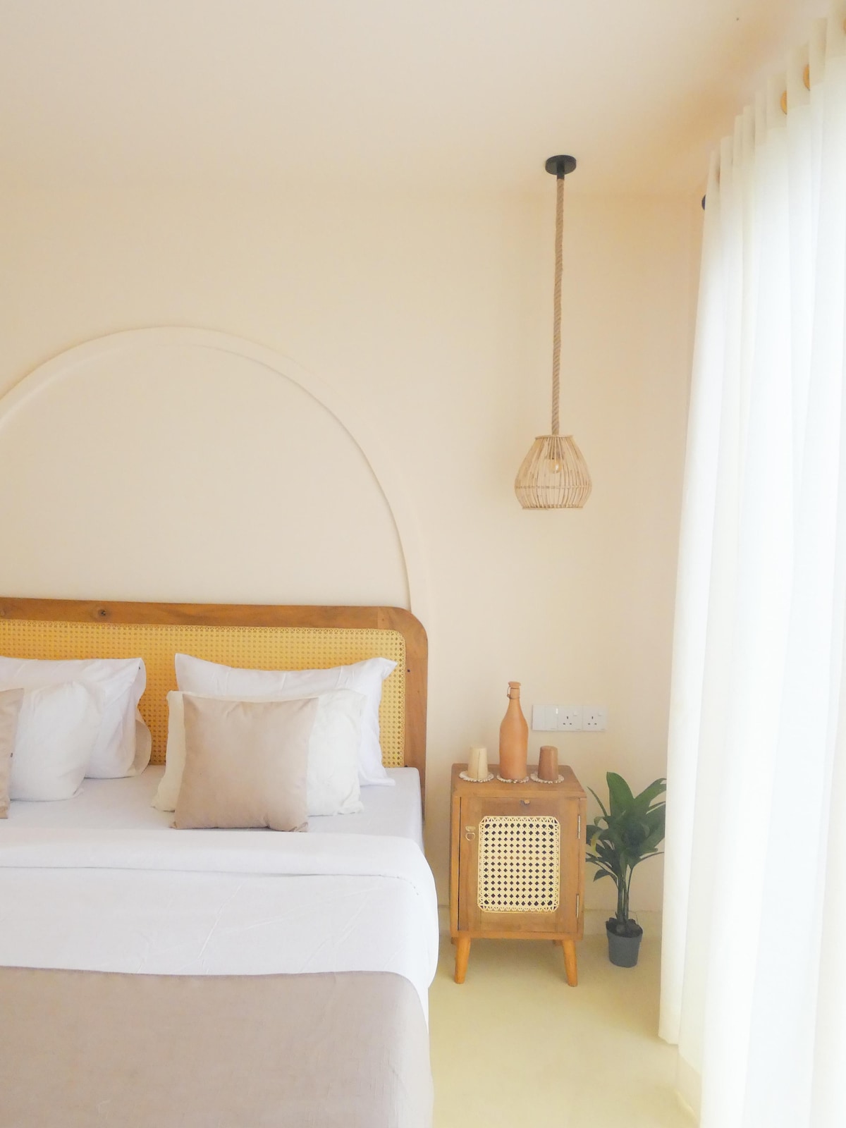 Bienvenido al acogedor primer piso de Susha Villa, ubicado en la tranquila zona turística de Hikkaduwa. Esta encantadora villa de madera cuenta con ventanas de parrilla y pisos de baldosas para una estancia cómoda. Ofrece dos dormitorios, un baño y una acogedora sala de estar-comedor, junto con una pequeña cocina para comidas ligeras. Ubicado en una calle tranquila cerca de la laguna, está a poca distancia a pie de restaurantes, tiendas y mercados de pescado. Nota:Los huéspedes deben subir escaleras para acceder al primer piso. ¡Disfruta de tu estancia en Susha Villa!