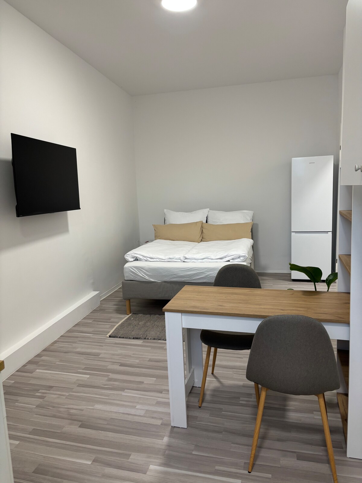 Cozy 25 m² city apartment in the heart of Minden – modernly furnished with double bed, Smart TV, and dining/work area. High-speed Wi-Fi up to 125 Mbps incl. Kitchenette with fridge, induction hobs & mini oven, bathroom with shower & towels. Restaurants, cafés, old town & train station within walking distance. Perfect central location yet a quiet retreat.