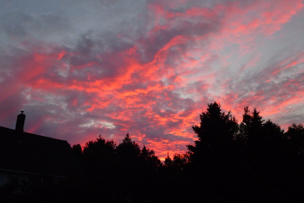 ¡Fern Sanctuary lleva el nombre de nuestro perro Fern! Ideal para cualquier época del año, desconecta de la rutina en este alojamiento único y relajante. Barrio rural, situado en el centro del sur de New Hampshire. A 20 minutos de Concord, del aeropuerto de Manchester, de St. Anselms College, New England College, Pat's Peak o las zonas de esquí de Crotched Mountain. Dirígete al norte a la región de los lagos, al oeste al monte Sunapee, o al sur para visitar Boston, todo a menos de una hora en coche. Muchos senderos accesibles directamente desde la suite.
