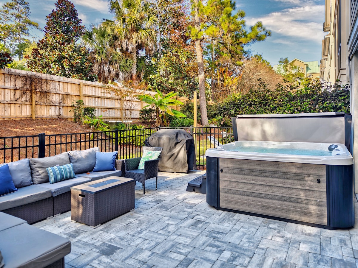 Welcome to your Lowcountry retreat! This family-friendly home comfortably sleeps up to 9 adults, offering a perfect blend of relaxation and entertainment for all => Hot Tub => Fire pit => Movie Screen => Yard Games => Pet friendly* => 4 bikes, 2 scooters => 2 Paddle boards => Luxe outdoor living => Walk to old town => 3 bd, 2.5 bath => 2 king, queen over queen, 1 Twin => Great for families => Palmetto Bluff luxury w/o the price => Screened in pergola (pics soon) => 5 star bedding high end linens