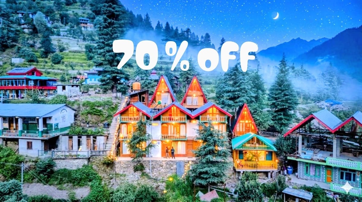 Place is centrally located in center of the valley where snow peaked mountains along with Pine trees add to the mesmerising view from Property & Rooms . on top of it the humming sound of differente Birds makes you feel rejuvnated you will get -In house Gym, Cafe with powerbackup,Car parking ,Biggest Food Menu & WIFI where you can have great music and live screening of Big Events while having delicious food and superb View from the Property of the entire Valley .