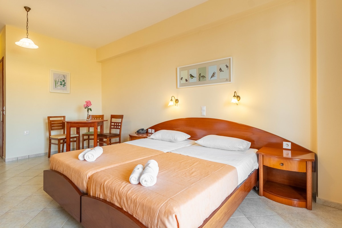 Dirigimos un pequeño complejo de estudios en el pueblo de Arillas, en Corfú. Vivimos en el lugar y si nuestros huéspedes nos necesitan, haremos todo lo que esté en nuestras manos para ayudarlos. La ubicación privilegiada de nuestros estudios ofrece la combinación única de privacidad, pero a pocos pasos de la playa y del restaurante más cercano. Todos nuestros estudios tienen balcones privados con vistas al mar. Nuestros estudios están a pocos minutos en coche del pueblo de Afionas y de la famosa playa de Porto Timoni.