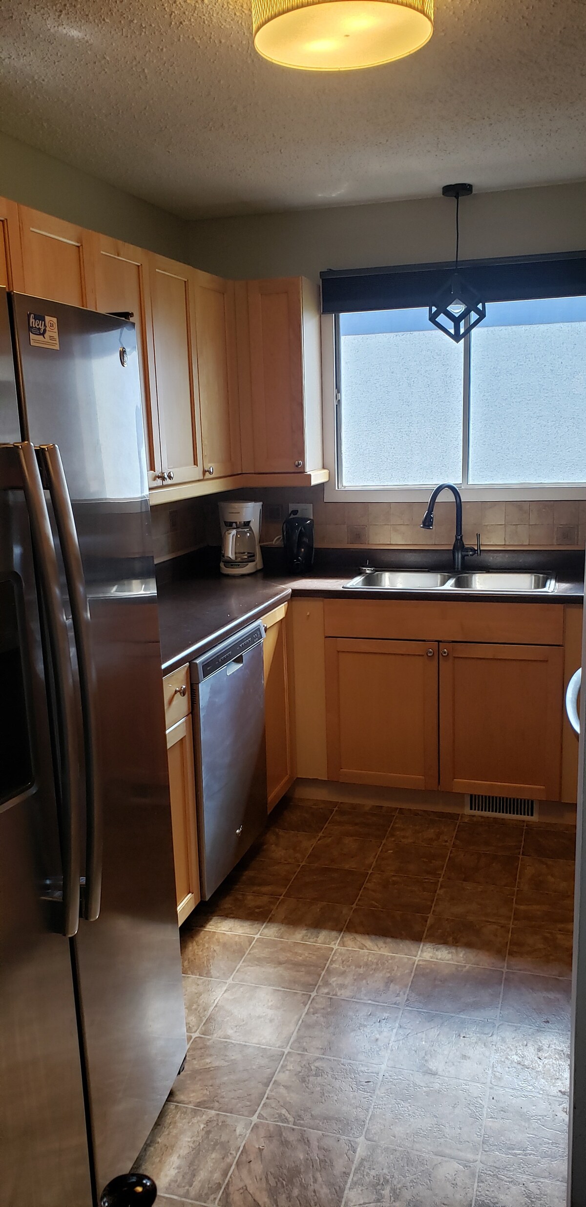 This stylish bungalow is perfect for a small group; it is your home away from home. Entire top floor of bungalow with over 1250 square foot of renovated space, 20 minutes away from Jasper national park and an hour to the town of Jasper. Essential services such as grocery, restaurants, etc. are about a three-minute drive. Fully stocked kitchen with everything you may need: Utensils, stove, fridge, dishwasher, coffee maker, Kettle, microwave, toaster, juicer, mixer, kitchenware, etc.