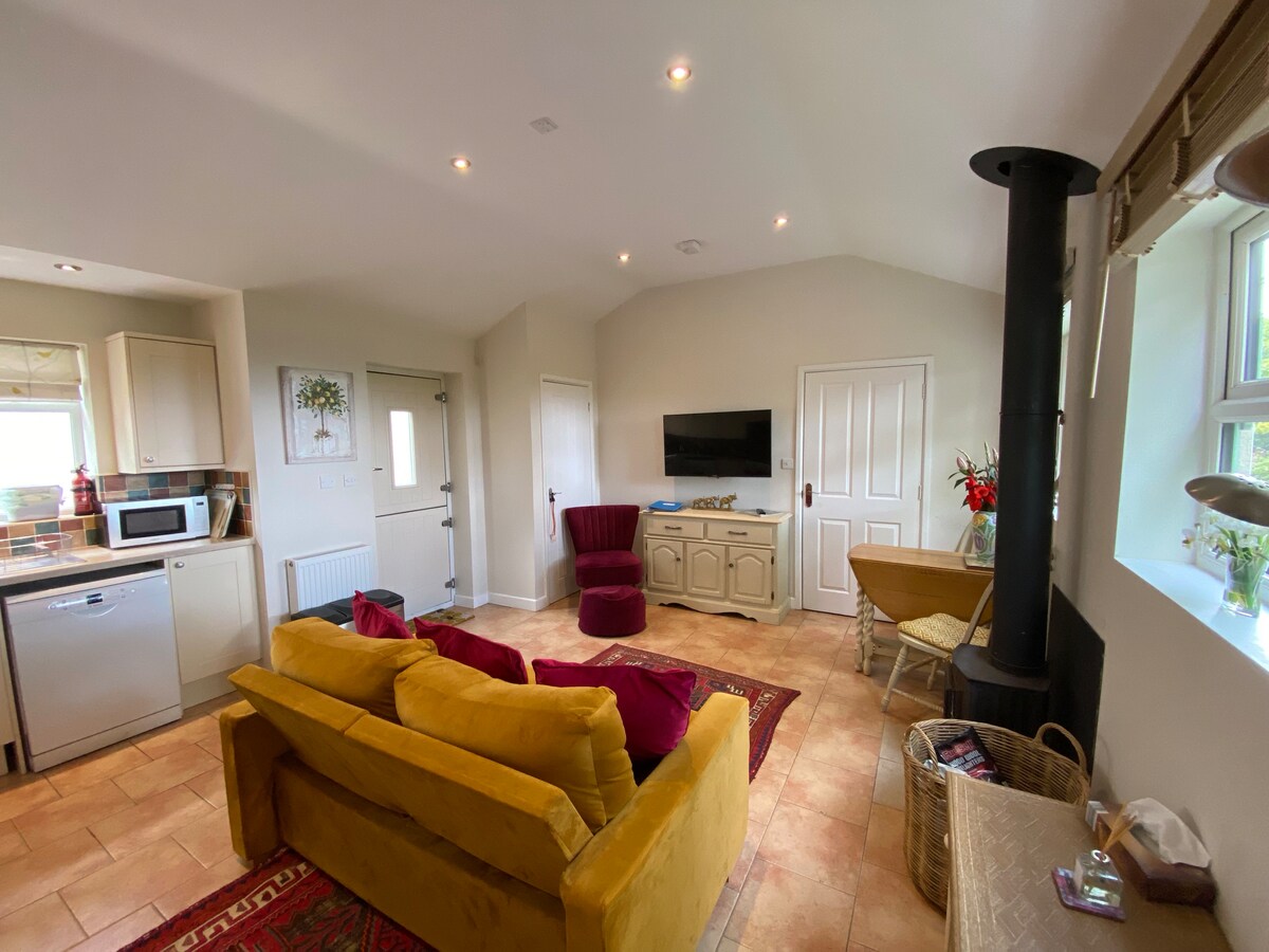 Un maravilloso, moderno y bellamente amueblado anexo independiente con entrada privada propia en 5 acres. Aparcamiento privado fuera de la carretera con unas vistas maravillosas y largos paseos por el campo directamente desde la propiedad. Una impresionante cama de hierro forjado te envuelve en calidez y comodidad con ducha y aseo privado. Una estufa de leña y un lujoso sofá de terciopelo con TV de pantalla grande garantizan una noche cómoda; pero también hay cinco pubs a poca distancia a pie.