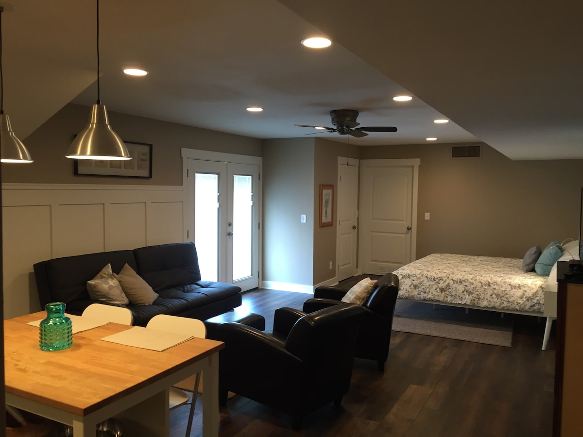 ¡Bienvenido a nuestro hotel de 5 estrellas con cocina! Nuestro apartamento estudio es espacioso y tan grande como muchas instalaciones de un dormitorio. Está cerca de estadios de entrenamiento de primavera, golf, autopista y restaurantes. Te encantará el barrio tranquilo, todos los muebles nuevos y la ubicación céntrica. Damos la bienvenida a parejas, aventureros solitarios, viajeros de negocios y familias (con hijos). Tenemos una cama tamaño king, un sofá cama y una cama plegable. ¡El alojamiento incluye una barra de pan integral casero recién hecho y mermelada!
