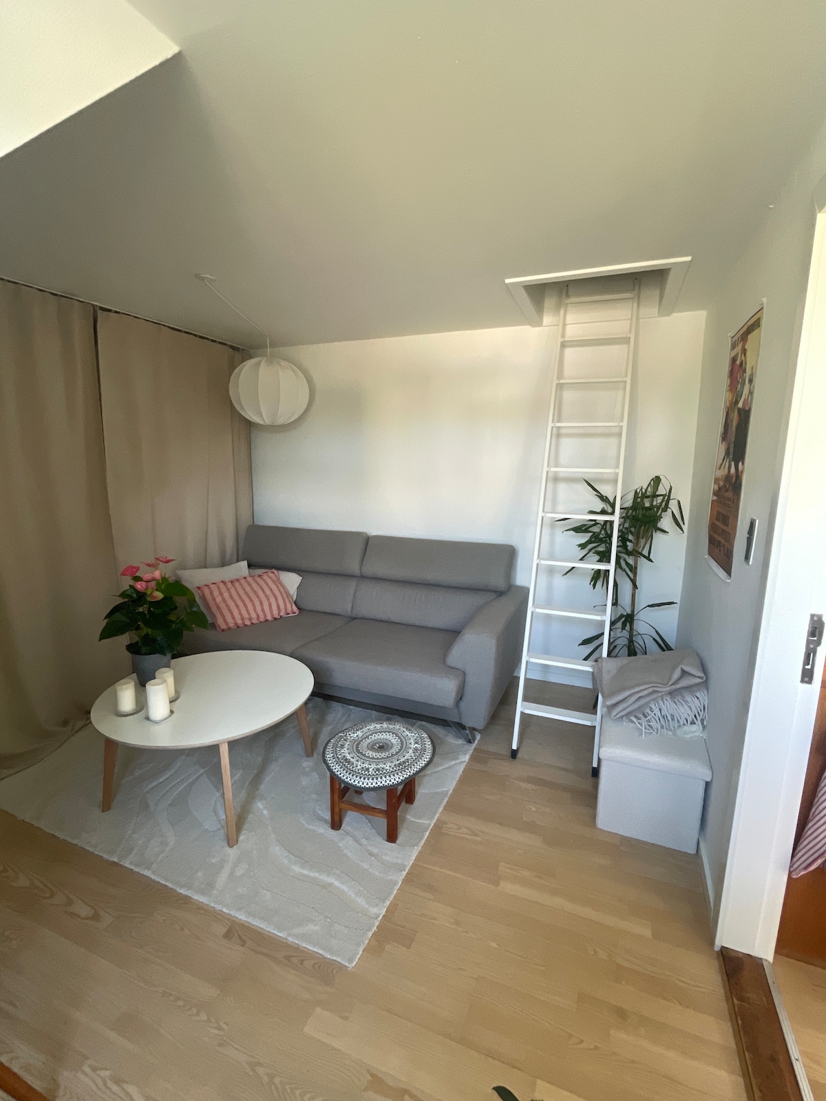 2 værelses charmerende og meget hyggelig lejlighed på 4.sal i hjertet af Aarhus, midt i øgaderne med den smukkeste udsigt over hele Aarhus. Butikker, caféer, Botanisk have, skov og strand i en radius af 500m. I lejligheden er der et hyggeligt køkkenalrum og en kombineret stue/soveværelse. Sengen er 140cm bred. Privat værelse på 5.sal uden adgang. Der er TV og wifi. Lejligheden passer perfekt til parret eller en single der vil opleve Aarhus indenfor gåafstand.
