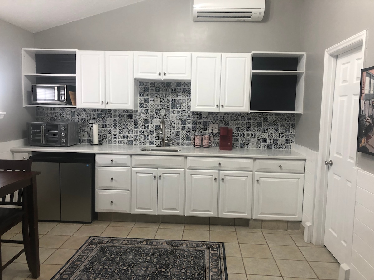 Disfruta de una estancia tranquila en este estudio totalmente amueblado para dos personas, situado en un tranquilo barrio de Southern Pines. Adjunto a la casa principal, pero totalmente insonorizado con una pared doble, ofrece una entrada privada con código de llave, cama tamaño queen y una cocina pequeña con una placa calefactora y plancha. Sal a tu propia área privada con una fogata. A pocos minutos de tiendas, restaurantes, cervecerías, campos de golf y películas. A solo 15 minutos del hospital, a 20 minutos del hipódromo de Rockingham y a 9 minutos de la fundación Walthour Moss.
