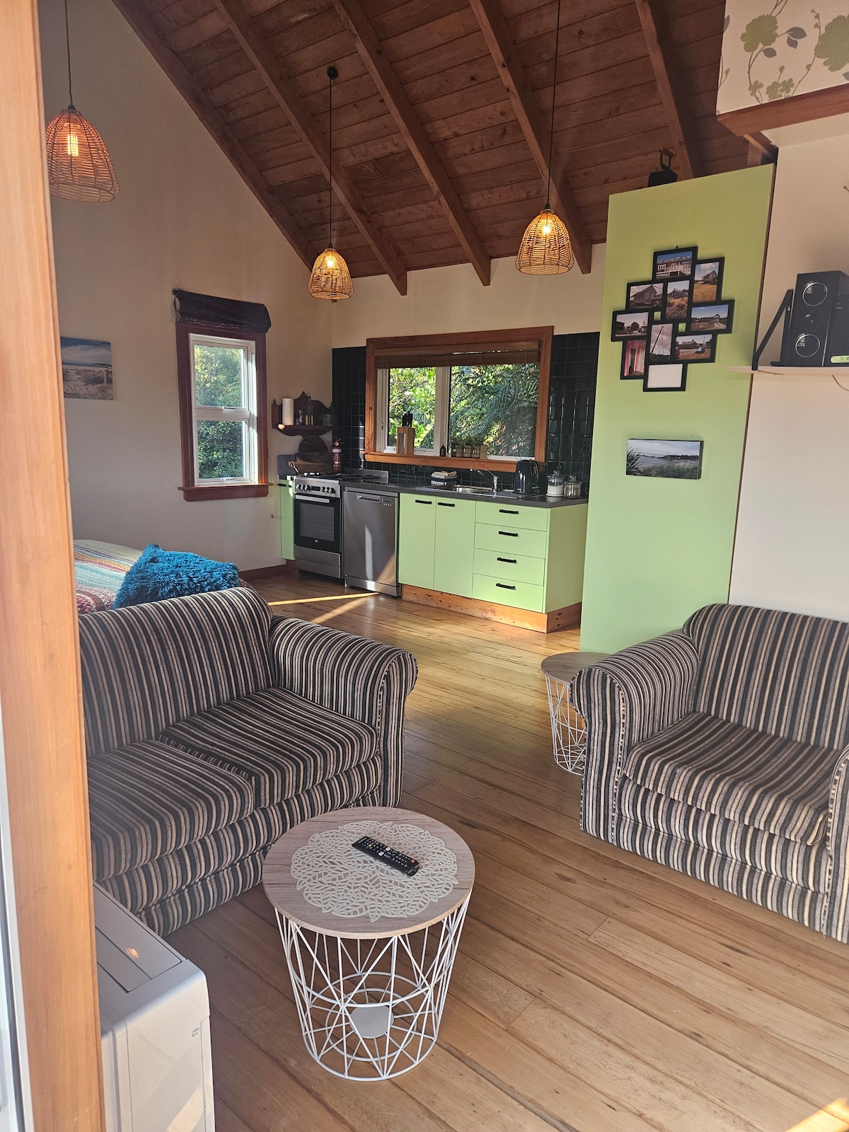 Un estudio frente a la playa con capacidad para 5 personas en la misma gran propiedad rural frente a la playa que Penguins Retreat y Whitebait Cottage. El área para dormir de la unidad grande está dividida en dos para que la cama tamaño queen y la segunda área con otra cama tamaño queen y una cama individual tengan privacidad visual, pero la pared no llega al techo. No vivimos en la propiedad, por lo que este lugar se adapta a viajeros independientes que tienen un coche y quieren pasar tiempo en una playa de la costa oeste. A solo 3 minutos en coche del municipio de Hokitika.