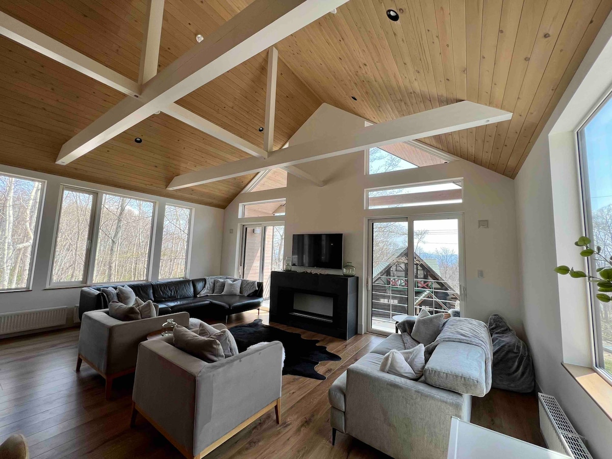Con una vista majestuosa del monte Yotei, nuestras instalaciones son una lujosa propiedad privada perfecta para grandes grupos de hasta 18 personas.La casa este está totalmente equipada, por lo que puedes disfrutar de una barbacoa en días lluviosos sin preocuparte por el clima.Ubicado a solo 15 minutos en auto de Rusutsu Resort, es conveniente disfrutar de actividades como esquí y golf.También está equipada con un gran proyector de 100 pulgadas, perfecto para ver películas y presentaciones.Además, tiene un horno de gas y una estufa de leña para aquellos que disfrutan del autoservicio.El espacio también está preparado para el trabajo, lo que lo convierte en un gran lugar para trabajar de forma remota o viajar por negocios.Disfruta de una relajación de lujo mientras te unes a la naturaleza mientras disfrutas de las espectaculares vistas del monte Yotei. * Este edificio está a lo largo de la carretera nacional, por lo que si pasa un auto grande, el edificio puede temblar un poco o ruidoso.Por favor, no lo utilices si estás nervioso.