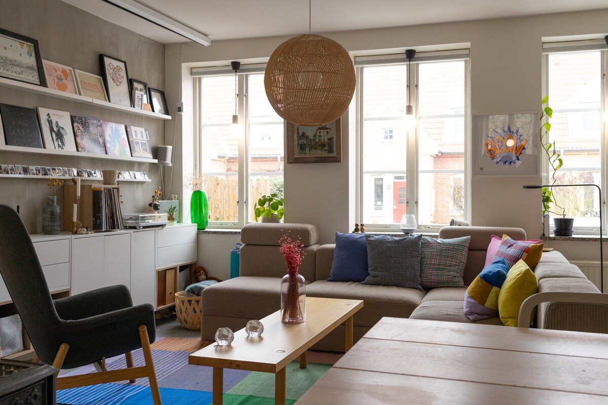 Disfruta de lo mejor de Copenhague en este apartamento único que es a partes iguales un refugio acogedor y un centro creativo. Relájate en el baño tipo spa hecho a medida con su bañera profunda. Mantente activo con el gimnasio del balcón u organiza una noche de cine en el cine en casa. Perfectamente ubicado a 8 minutos del centro de la ciudad/Tivoli y a 15 del aeropuerto. También estás a solo 5 minutos a pie de la reserva natural de Amager Fælled, perfecta para practicar senderismo y avistar ganado de las Tierras Altas. El punto de partida perfecto para tu próxima aventura.