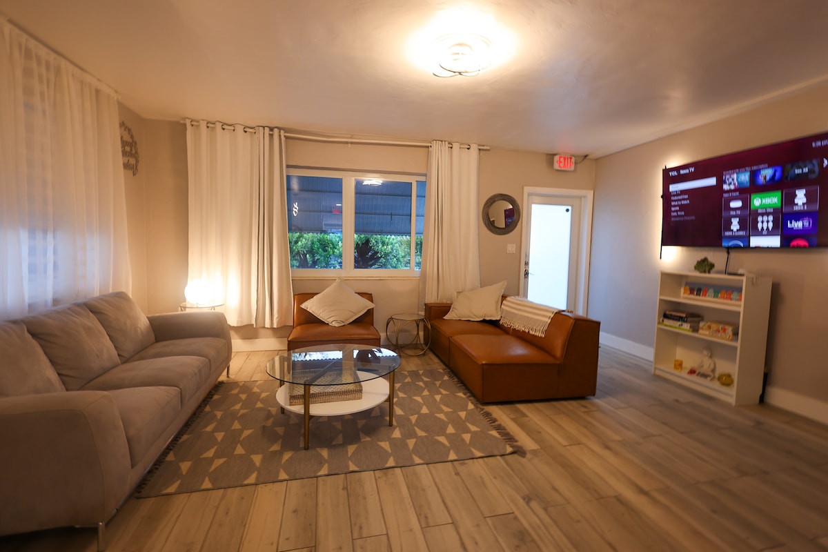 Intimate Retreat for Young Couples: Relax in Style & Enjoy the Beach! Now open for FIFA World Cup 2026 fans This 1-bed, 2-bath escape offers modern coastal living just steps from Hollywood Beach. Enjoy a stylish living area, equipped kitchen, AC + ceiling fans, fast WiFi, flat-screen TVs, and workspaces. Step outside to the shared backyard patio with BBQ and access to the common laundry area. . Unbeatable comfort and an ideal location for the perfect escape after a day of soaking up the sun!