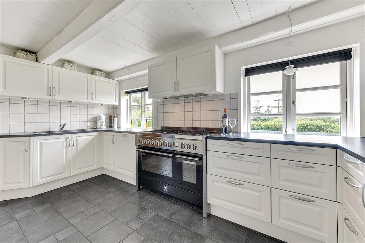 Acogedora casa de vacaciones con techo de paja con vistas al Limfjord y a la isla de Venø. Está situado en la hermosa zona de Toftum Bjerge y es ideal para familias con niños o grupos más grandes de amigos. La casa de vacaciones se compone de la casa principal y un anexo y tiene su propio jardín con una terraza cubierta y una terraza de madera con una hermosa vista del agua y el paisaje. Tanto la casa como el anexo están recién renovados. Casa para NO fumadores – Se permite fumar fuera.