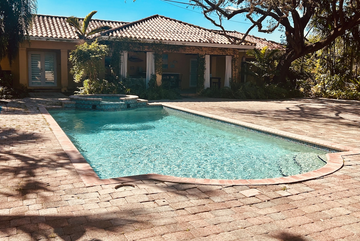 Oasis tropical ubicado en el centro entre Miami Beach y Key Largo. Aunque es posible que nunca quieras irte. La acogedora casita con baño privado y balcón está escondida, rodeada de una exuberante vegetación y sonidos de la cascada. Date un chapuzón en la piscina o en la gruta, relájate con un cóctel por la tarde bajo la cabaña tiki o descansa en la hamaca. Durante esos meses más fríos, sumérgete en la bañera de hidromasaje. Disfruta de los kilómetros de senderos cercanos que se extienden desde Coconut Grove hasta Black Point Marina.