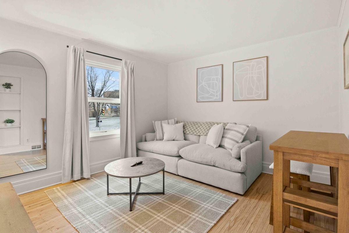 Relájate en este cómodo y espacioso apartamento de 1 dormitorio en el histórico Penfield Four Corners, en el lado este de Rochester. Entorno seguro y suburbano a solo 8 millas del centro de Rochester. A poca distancia a pie de muchos restaurantes y cafeterías locales. Recientemente renovado con una nueva **cama tamaño king** y un sofá cama tamaño queen con espuma viscoelástica adicional de 4 pulgadas para mayor comodidad. Cocina totalmente equipada con electrodomésticos nuevos para que te sientas como en casa. Wegmans y Target están justo al final de la calle.