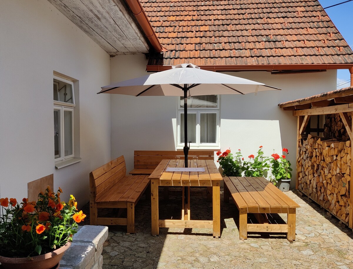 Celou bytovou jednotku máte jen pro sebe. 2 lůžka jsou v ložnici, 2 lůžka na rozkládací posteli s kvalitními matracemi. Můžete užívat velkou terasu s posezením. V přízemí bydlí naše rodina, v podkroví je další byt, se kterým apartmán sousedí. Hosté oceňují výhled na rybník, procházky či cyklistiku v blízkých lesích, nebo možnost návštěvy okolních kulturních památek. Dům stojí na vesnici nedaleko Jindřichova Hradce. Příjemně si odpočinete, ať už projíždíte, nebo chcete zůstat na pár dní.