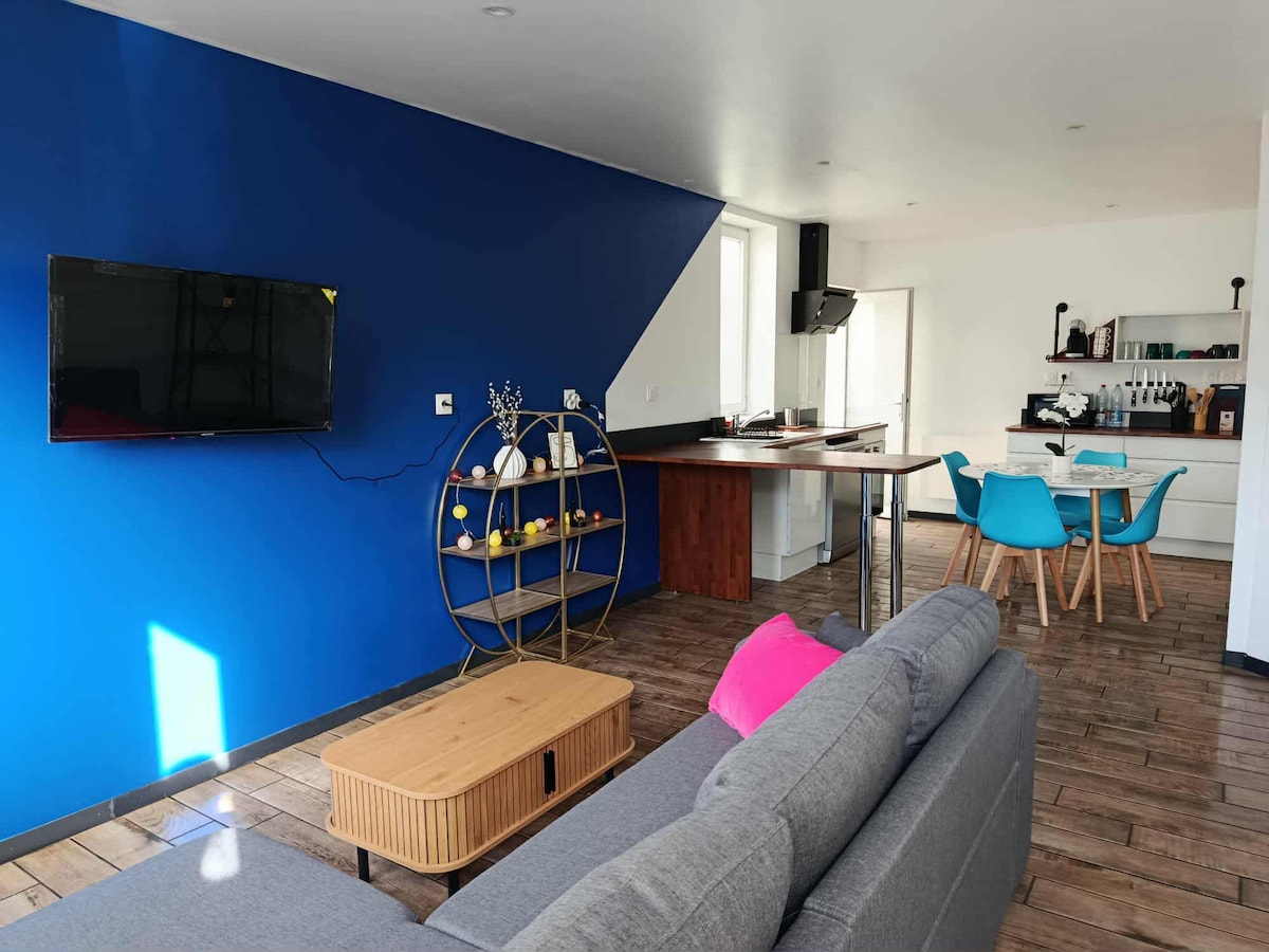 Découvrez le charme moderne de ce gîte entièrement rénové et équipé avec tout le nécessaire pour un confort absolu ! ( allée commune extérieure sous surveillance vidéo ) pouvant accueillir jusqu'à 6 personnes ( un lit deux personnes, un canapé convertible et un matelas gonflable intex ) Le nombre exact de personnes présentes est à préciser lors de la réservation. De nombreuses activités sont à découvrir dans notre belle région. Au plaisir de vous accueillir.. Céline et Manuel
