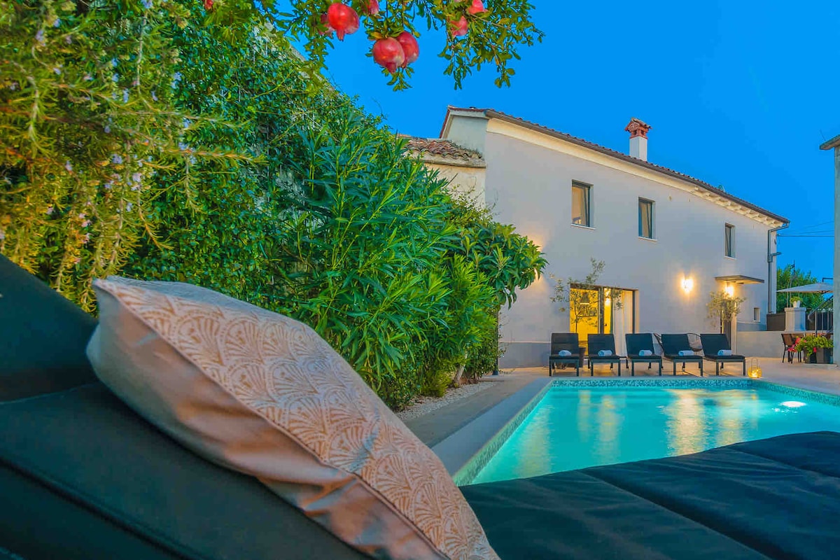 In Poljaki in der Nähe von Barban befindet sich die ruhige Villa Casa Oleander - ein stilvoll eingerichtetes Haus auf 2 Etagen. Im EG befindet sich ein geräumiges Wohnzimmer, ein Essplatz, eine voll ausgestattete Küche und ein WC . Im OG befinden sich 3 Schlafzimmer sowie ein Bad mit Badewanne und WC. Im Außenbereich ist eine überdachte Terrasse mit Essplatz, Grill und Loungebereich sowie der beheizbare Pool und eine Solardusche. Das uneinsehbare Grundstück wird durch eine Mauer eingegrenzt.