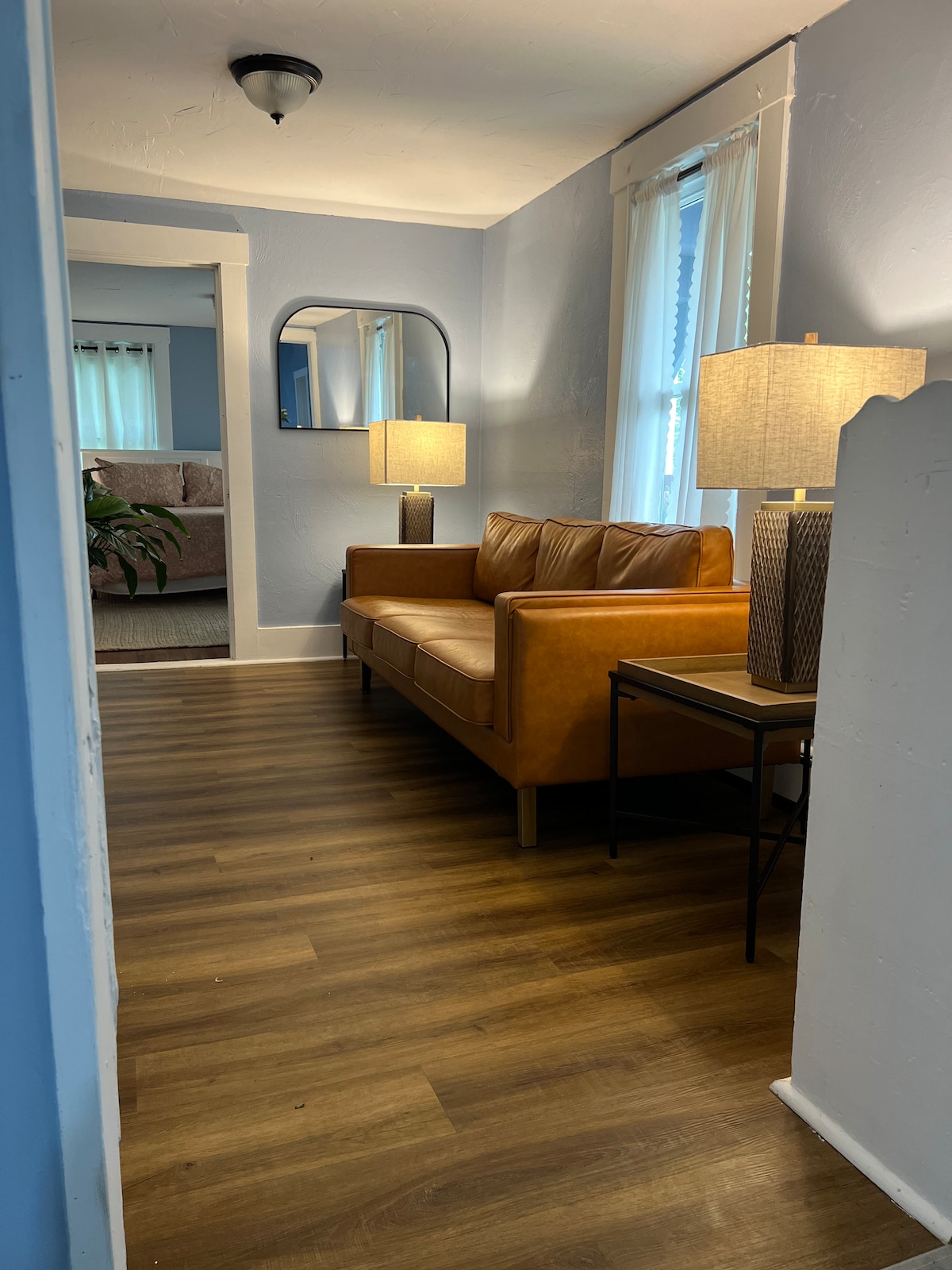 La suite permite un máximo de dos mascotas por reserva por 50 $ por mascota. La privacidad de nuestros huéspedes comienza desde el registro de entrada hasta el registro de salida con entrada privada. El salón tiene una minibiblioteca para los huéspedes, un televisor inteligente de 65 pulgadas con Internet de alta velocidad y canales locales de YouTubeTV gratuitos. La suite tiene una minicocina con mininevera, congelador, microondas, freidora de aire y cafetera. También tiene utensilios de armario, artículos de limpieza, armario de ropa de cama y colchón de aire de bomba eléctrica si es necesario.