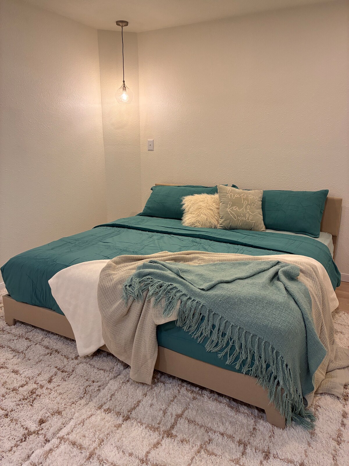 La Eagle House es una acogedora casa de nueva construcción que ofrece un ambiente moderno, terroso y lujoso. La gran casa privada tiene 3 dormitorios, 3 baños completos, oficina privada, patio y una gran zona de césped al aire libre. A una milla del lago Eagle Mountain, los huéspedes pueden disfrutar de senderos arbolados, canchas de tenis, muelles para barcos y zonas de picnic frente al mar, todas fácilmente accesibles y gratuitas. El centro de Fort Worth, museos de clase mundial, tiendas, restaurantes y el histórico Stockyards se encuentran a poco más de 30 minutos en coche.