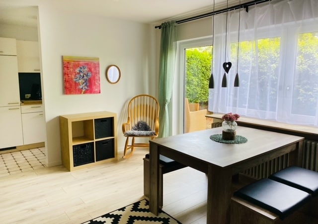 Gemütliches neuesApartment, allein oder für zwei. Separater Eingang, gelegen in einer ruhigen Seitenstraße, ins Zentrum ist es ein leichter Spaziergang von 15 min. Bus und Supermarkt in nächster Nähe. 50qm perfekt ausgestattet, voll eingerichtete Küche, großzügige Dusche mit Rainshower, gut schlafen im Boxspringbett 1,8x2m. Hübscher Innenhof. Parkplatz vor der Tür.