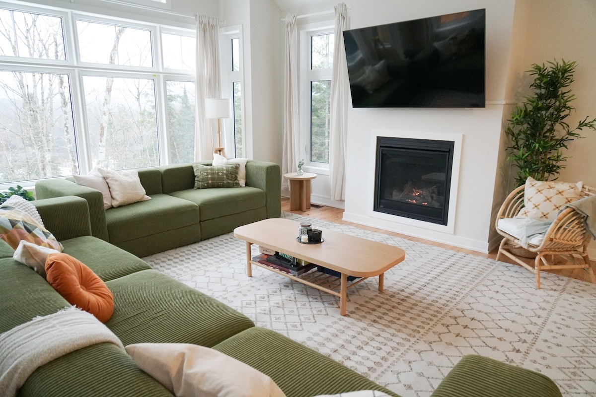 Embárcate en un viaje de bienestar en familia en nuestra cabaña de estilo nórdico en Muskoka. Relájate en el jacuzzi adornado con glicinas o junto al fuego, acurrucado en sillas Muskoka. Este bungalow cuenta con techos altos, ventanas amplias y una chimenea moderna. El baño en suite ofrece una ducha sin marco rejuvenecedora y una bañera profunda. El río Muskoka está a 250 metros y la playa de Port Sydney, a 10 minutos en coche. Disfruta de la diversión y el bienestar en familia durante todo el año. Tu escapada rejuvenecedora comienza aquí.