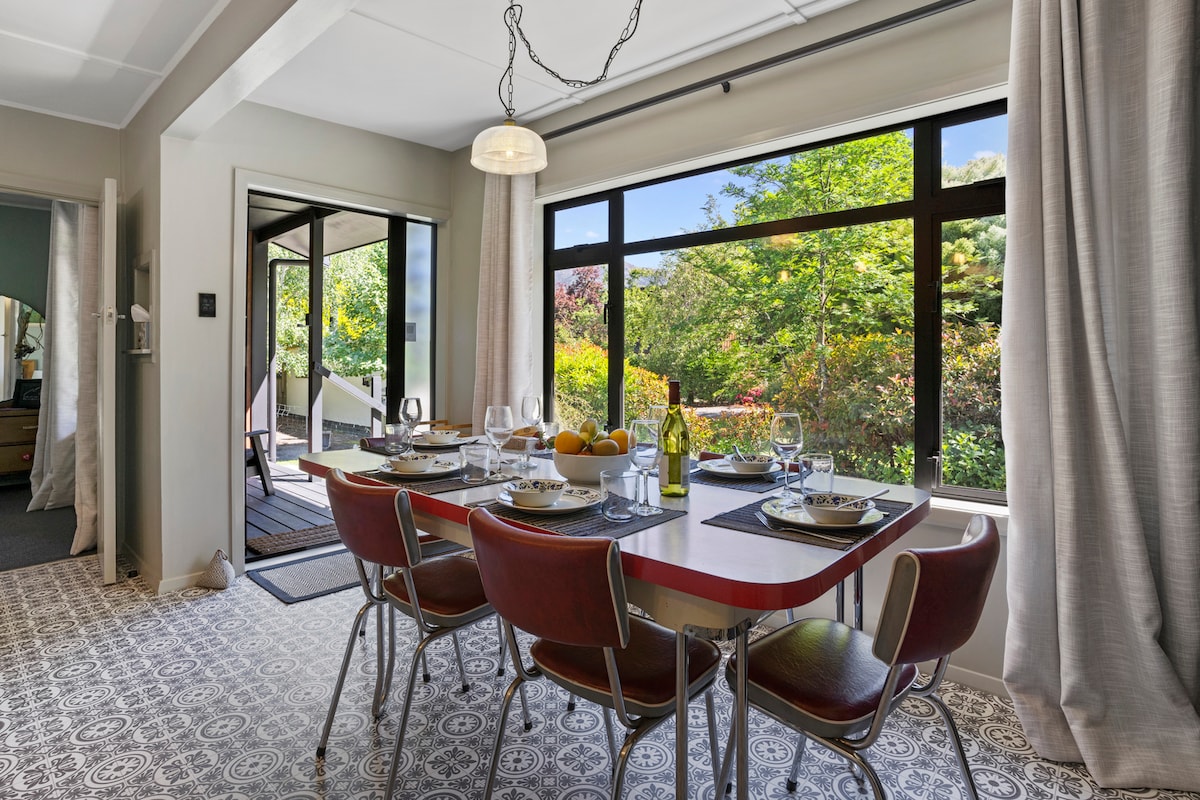 Bienvenido a nuestro tranquilo oasis en el centro de Amberley. Al pasar por la puerta te sentirás transportado a un mundo completamente diferente, rodeado de hermosos nativos y cerezos en flor (en temporada). Esta casa de campo llena de carácter fue construida originalmente en 1903, está llena de encanto con muchas adiciones modernas. El jardín es muy privado, tanto que puedes desconectar y relajarte en el baño al aire libre bajo las estrellas y nadie lo sabrá.