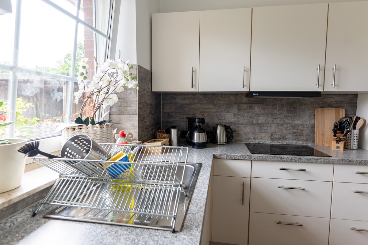 ¡Bonito apartamento privado de una habitación con baño y cocina americana con un aspecto elegante espera a sus queridos huéspedes! El apartamento se encuentra en una casa unifamiliar . PAPENBURG está a unos 6 km de distancia. Bonita ubicación tranquila. Magníficas vistas a la naturaleza virgen, huerta. Allí se puede descansar el alma. En las cercanías se encuentra el Gut Altenkamp con diversas exposiciones y conciertos. Aunque el apartamento está en mi casa, tienes tu propia entrada.
