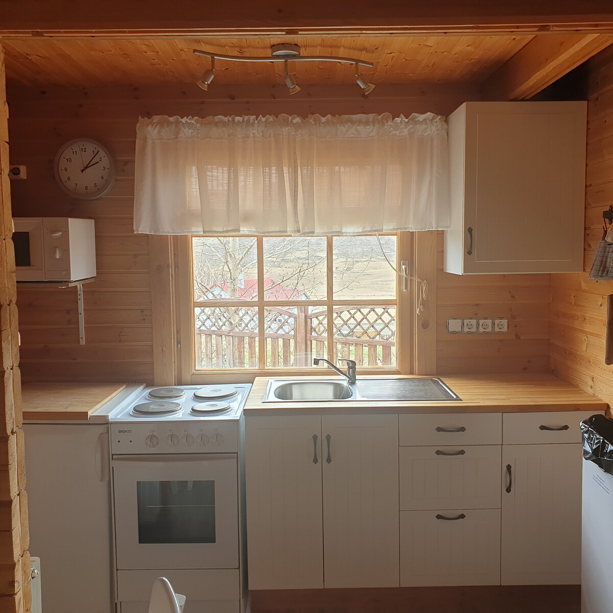 Warm and homy chalet that sits at the end of the big cliff walls of Ásbyrgi National park. Perfect for 2 adults (2 children can sleep in the sofa bed free of charge up to 12 years old) Big veranda with outside furniture and BBQ. Fantastic view in all directions. Perfect to enjoy the midnight sun and northern lights. Grate for daytrips (Dettifoss 34 km. Whale watching 59 km. Lake Mývatn 76 km. Ásbyrgi 2km. Horse riding, golf, bike rental 2 km a.o.) Great selection of hiking trails. WELCOME !
