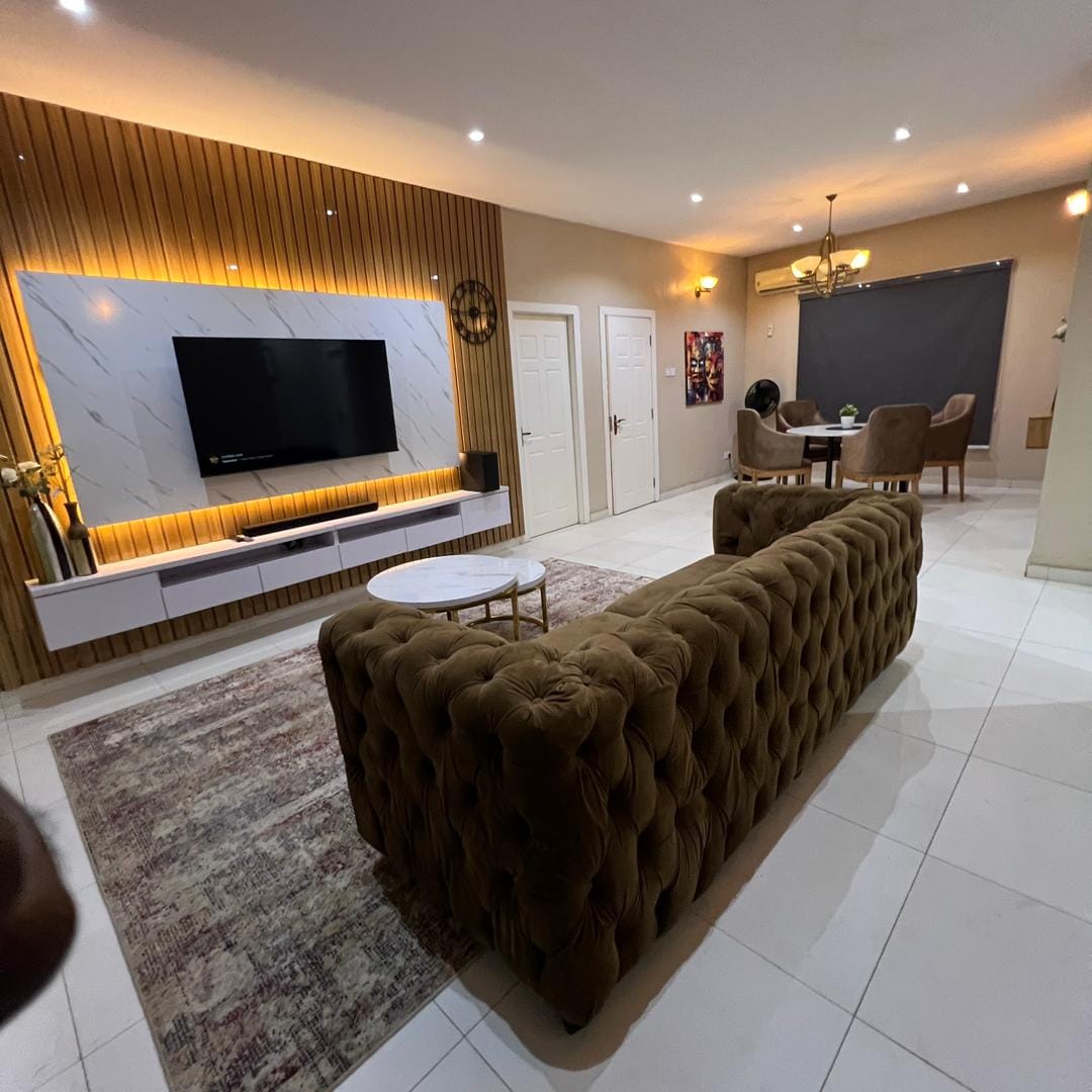 APARTAMENTOS D'EXQUISITE, recién construidos en enero de 2024 con servicios de lujo de última generación en un entorno sereno y tranquilo, entorno familiar y único cerca de atracciones , centros comerciales, salones/bar, etc. Electricidad 24/7, internet/WIFI gratuito, aparcamiento gratuito y amplio complejo que se puede utilizar para fiestas/ reuniones. Todo el grupo se sentirá cómodo en este espacio espacioso y único con personal de seguridad 24/7 y personal de apoyo en el sitio para servicios de limpieza gratuitos.