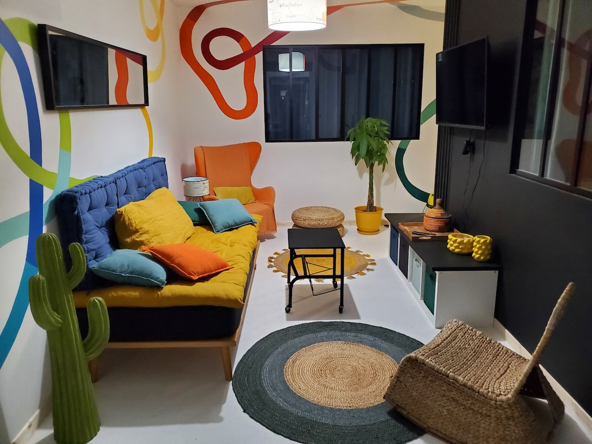 Ofrecemos una estadía tranquila en un apartamento privado renovado de 60 m² en la planta baja de nuestra casa, con terraza también privada. El alojamiento consta de 1 dormitorio con cama doble + sofá de 1 plaza en la sala de estar. Ideal para una pareja sola o con un niño. Ponemos a tu disposición 2 bicicletas para visitar La Rochelle (a 10 minutos del CV en bicicleta) y la isla de Ré (a 30 minutos del puente). Al regresar de su día, podrá relajarse en su sauna privada (en el baño).