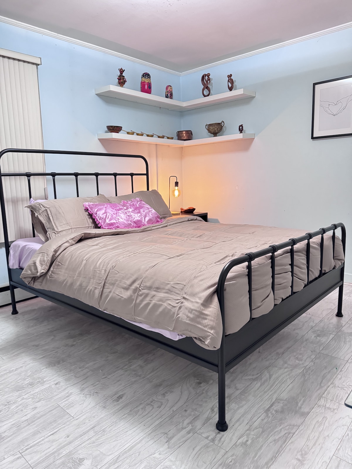 Enter a fully-equipped modern condo that effortlessly combines convenience with the welcoming ambiance of home. Highlights: * Entire brand new condo all to yourself (including full kitchen, washer/dryer, bathtub and shower) * Seamless checkout with minimum tasks * Access to in-building terrace and gym * Convenient parking & public transport * 3 mins to supermarkets, 10 mins to Downtown & 15 mins to airport *We can add an extra bed in the room to accommodate up to 5 people.