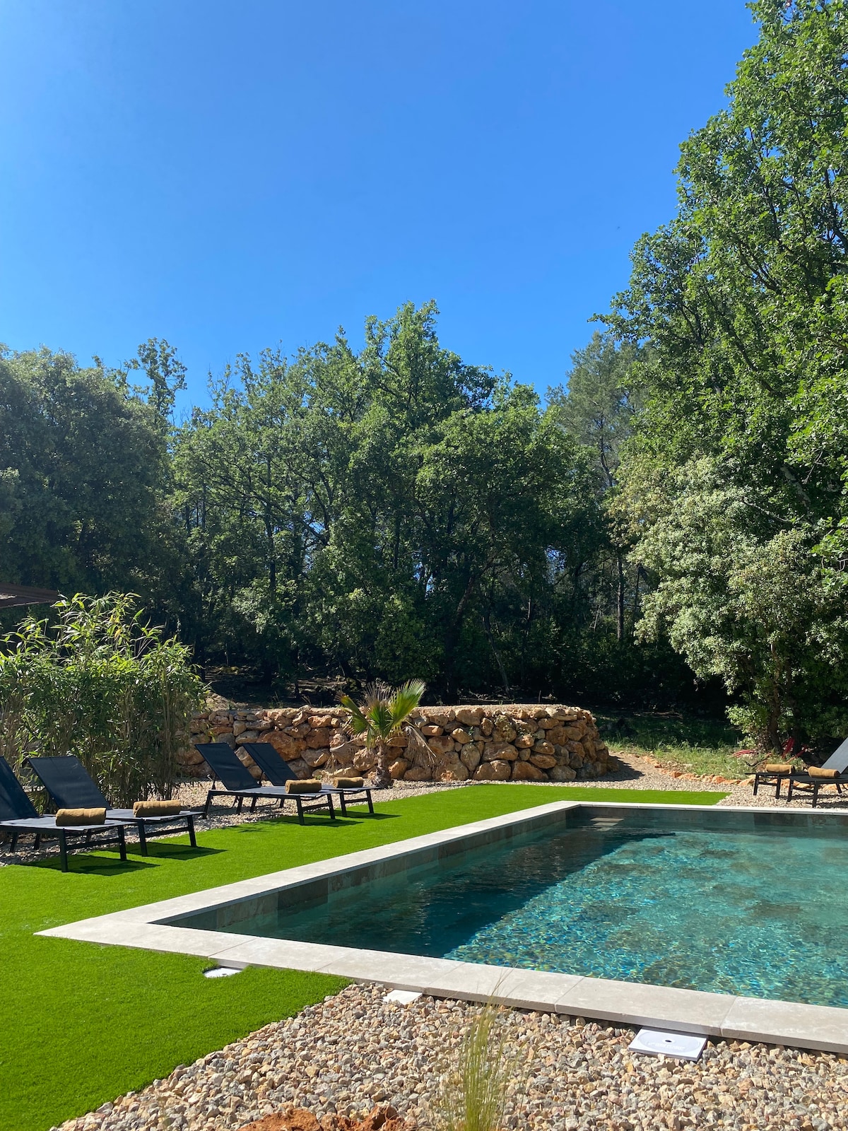 Alojamiento completo: apartamento en la planta baja con terraza de madera con vistas al mar y a los pinos y una plaza de aparcamiento en el corazón de Gigaro en una urbanización con seguridad. La exposición al suroeste le permitirá disfrutar del sol todo el día y de la puesta de sol. El acceso a la playa está a 7 minutos andando. El apartamento tiene una cama y un sofá cama, una cocina, un baño y un aseo separado