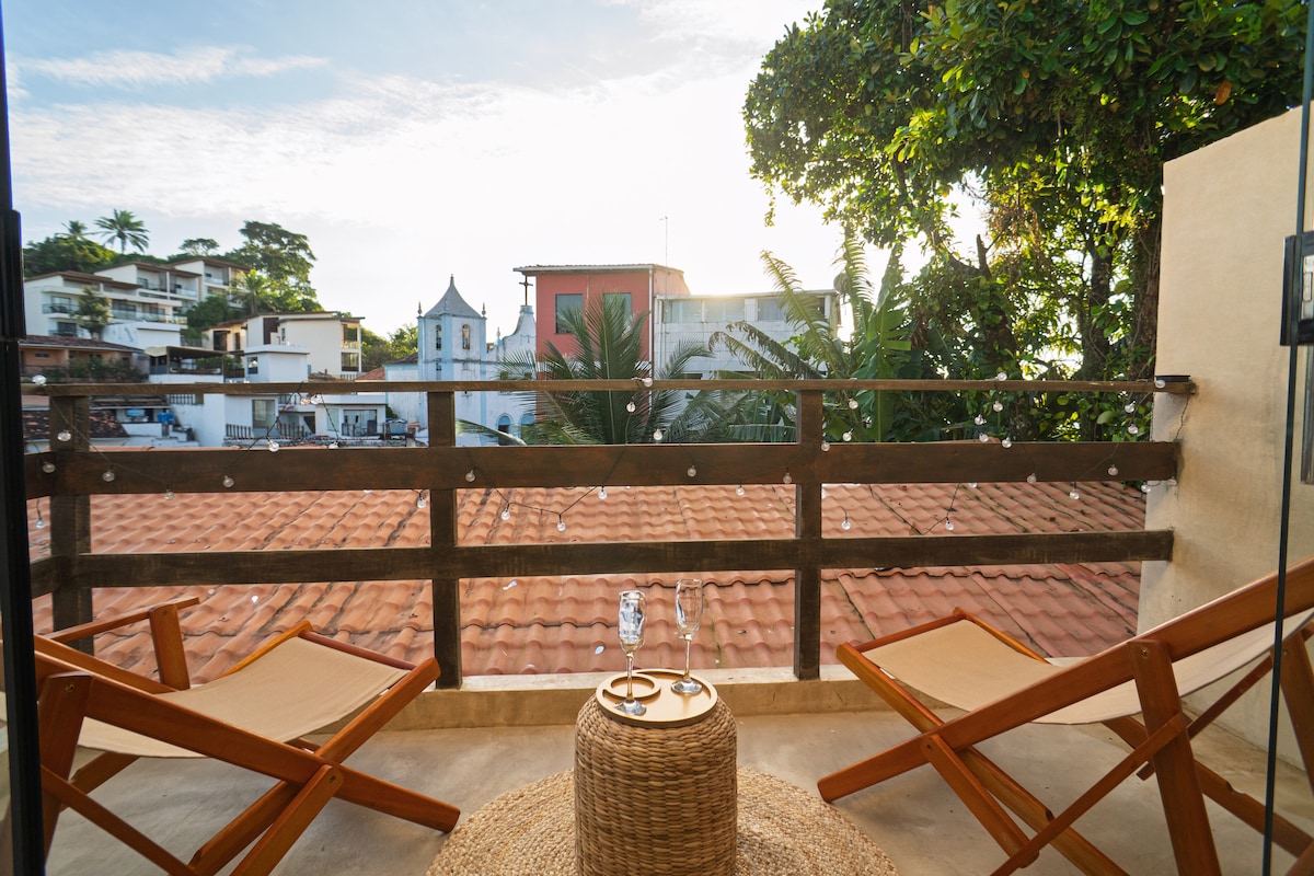 Apartamento Ocean Breeze en Morro: Ubicado en la pintoresca isla de Morro de São Paulo, este encantador apartamento ofrece una combinación de comodidad y belleza natural. Desde el balcón privado, se puede disfrutar de vistas panorámicas del pueblo y del mar, sentir la brisa fresca del océano la tranquilidad y relajación. A solo cinco minutos caminando de la 1ª playa y de los mejores restaurantes, bares y tiendas locales lo que permite a los huéspedes disfrutar de la vibrante vida local.