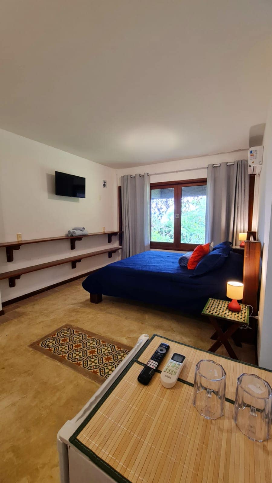 Espacio nuevo, tranquilo y encantador. Suite con cama queen, luces de lectura y ropa de cama perfumada. Una cocina con filtro de agua, encimera de dos hornillas y utensilios para preparar comidas. Balcón muy agradable, con mesa, hamaca cómoda y piscina a pocos pasos de distancia. Todo hecho con cariño para recibir a personas de buen gusto en busca de tranquilidad. La serenata está a cargo de la sinfonía de la Mata Atlántica de Ilhabela, una de las islas más bellas de la costa brasileña.