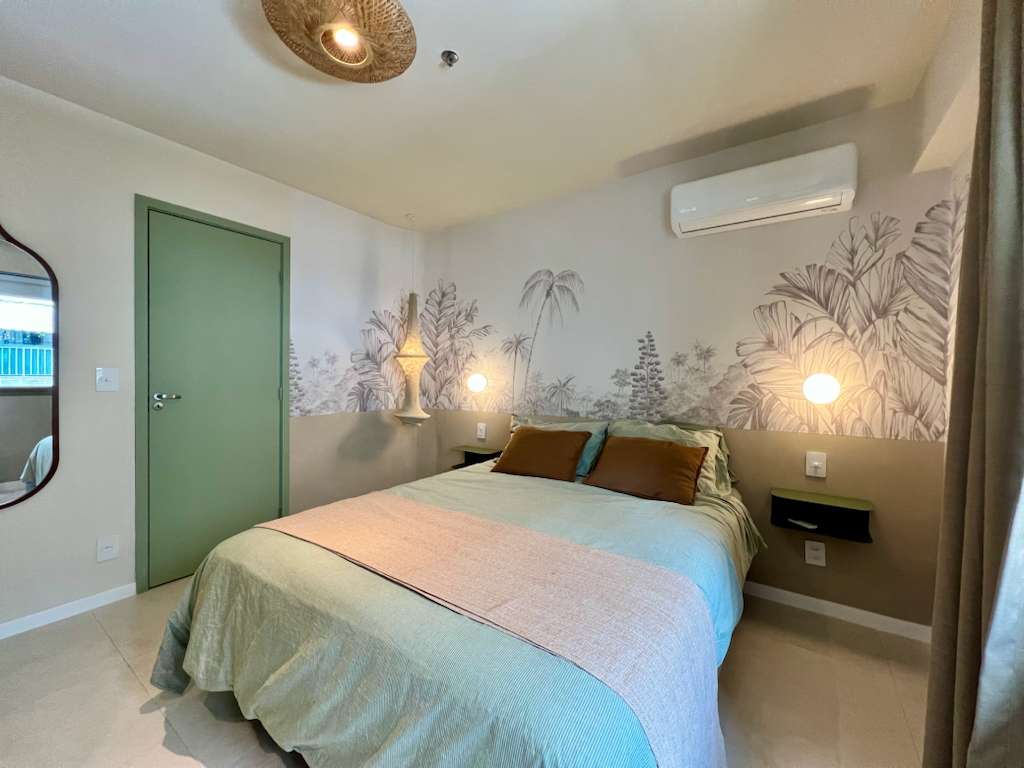 Acogedor Estudio a media cuadra de la playa de Ipanema. Edificio con portería 24 horas, rampa de acceso para discapacitados, zona común con mucho verde, aparcamiento de bicicletas. Apto totalmente equipado para su comodidad. Toallas de baño y playa, ropa de cama de 270 hilos, edredón de lino, aire acondicionado en 2 ambientes (dormitorio y sala), minibar, microondas, cocina de inducción, cafetera Nespresso y convencional, TV 50", Wi-Fi, TV por cable, plancha, secador de pelo, hamaca.