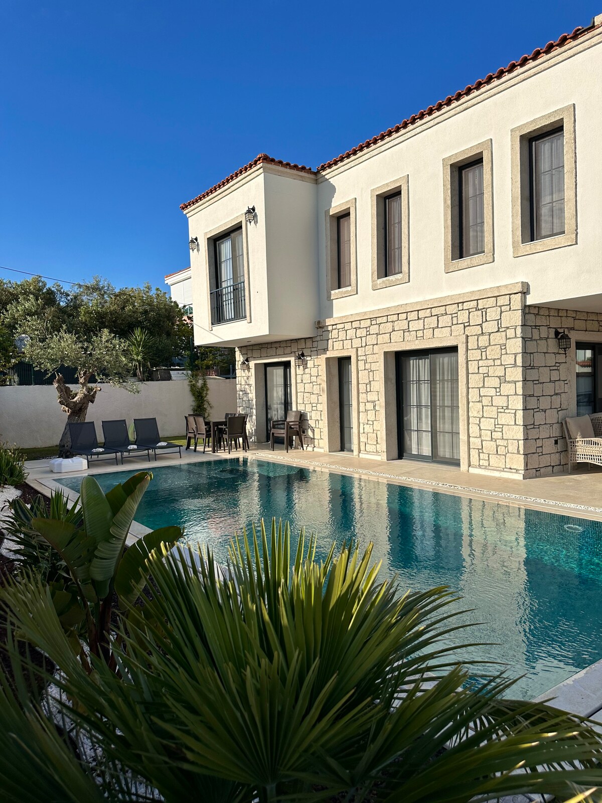 Disfruta del verano en nuestra moderna villa de 4 dormitorios en Alaçatı: ¡la piscina privada, el jardín soleado y toda la comodidad te esperan! Cada habitación tiene aire acondicionado, una cocina moderna, lavadora y artículos de limpieza. Controla fácilmente todo con el sistema de hogar inteligente. Disfruta de internet de 100 Mb y acceso a Netflix. Todos los muebles son nuevos y cuidadosamente seleccionados. Ubicación céntrica con fácil acceso a playas y restaurantes.