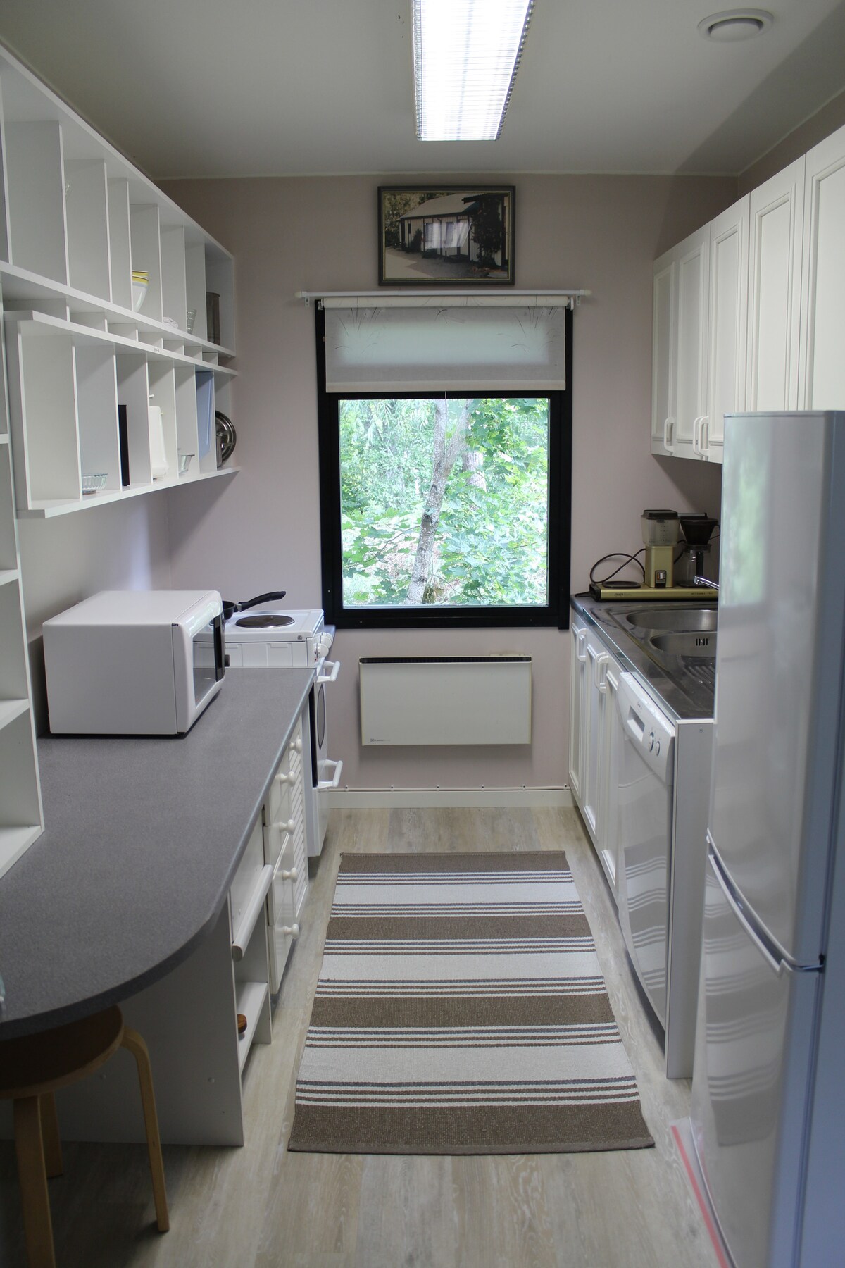 Pronunciado como acogedor, el apartamento está ubicado en una asociación de viviendas con fachada amurallada y tranquila, y en un entorno tranquilo. El apartamento es personal y luminoso, un triángulo de 60 pies cuadrados con un balcón totalmente nuevo y acristalado. La cocina se encuentra detrás de una divertida pared de cristal. Se acaba de renovar, incluido un lavavajillas y un nuevo congelador frigorífico. El centro de la ciudad está a menos de un kilómetro de distancia y se puede llegar a través del Aalto Center por bonitos senderos para caminar. Los huéspedes tienen acceso a Netflix.