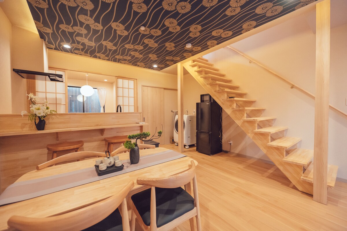 [Japón puro] La casa de huéspedes de la marca está diseñada por un diseñador japonés de alto nivel con la filosofía de "incluso en tu ciudad natal, vale la pena experimentar una vez". Está decorada con madera y combinada con elementos residenciales tradicionales japoneses. ¡Hay muchos detalles inolvidables que permiten a los visitantes apreciar el paisaje natural de Japón mientras experimentan la belleza de la arquitectura y la cultura tradicionales japonesas! Esta casa de huéspedes se encuentra en un edificio unifamiliar de 2 pisos en la ciudad de Osaka, con 4 dormitorios y capacidad para 8 huéspedes. La habitación es espaciosa, luminosa, cómoda y cálida, y está cerca de zonas comerciales populares como Tennoji, Nihonbashi, Shinsaibashi, Namba y Dotonbori. Se puede acceder directamente desde el aeropuerto de Kansai en la línea principal de Nankai. Esta casa está a 350 metros de las líneas de metro Sakaisuji y Midosuji en la estación Dobo-Mae y a 650 metros de la línea Yonohashi en la estación Hanazonocho.Está a 800 metros de la estación de Shin-Imamiya en la línea Nankai. Este alojamiento es una combinación de una casa japonesa moderna y una casa local.Hay comodidad moderna y una experiencia de sueño tradicional japonesa. El área total es de unos 86 metros cuadrados.