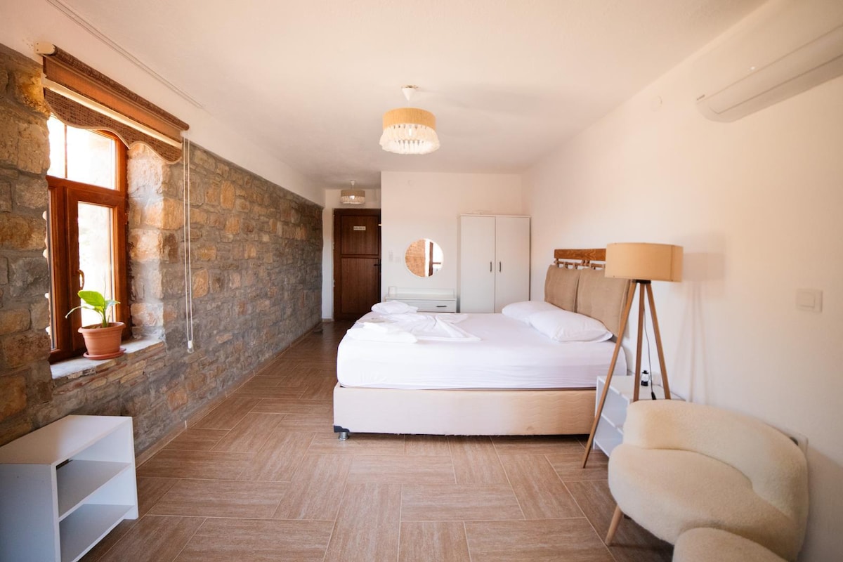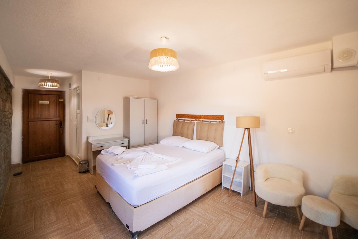Aile odamız, denize yürüme mesafesinde bulunan, doğayla iç içe huzurlu ve ekonomik bir köy tatili arayan aileler için konforlu bir konaklama seçeneği sunmaktadır. Çift kişilik yatak ve 1 tek kişilik yatak , duşlu banyo, TV, Wi-Fi, klima, gardırop ve açılabilir pencere mevcuttur. Güvenlik için sineklik, duman dedektörü ve yangın söndürücü yer alır. Kişisel klima ve yakın kahvaltı alanıyla evinizde gibi hissedersiniz.