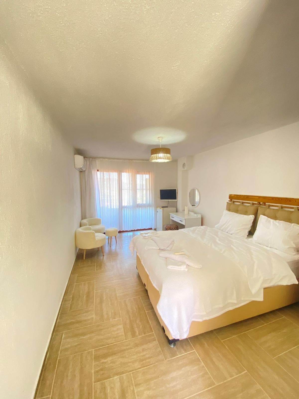 Nuestras habitaciones ofrecen una opción de alojamiento cómoda para familias que están a poca distancia del mar y buscan unas vacaciones tranquilas y económicas en un pueblo en contacto con la naturaleza. Hay una cama doble, baño con ducha, TV, wifi, aire acondicionado, zona de estar, armario y ventana que se puede abrir. Hay mosquiteras, detector de humo y extintor de incendios para la seguridad. Te sentirás como en casa con una mininevera, aire acondicionado personal y una zona de desayuno cercana.