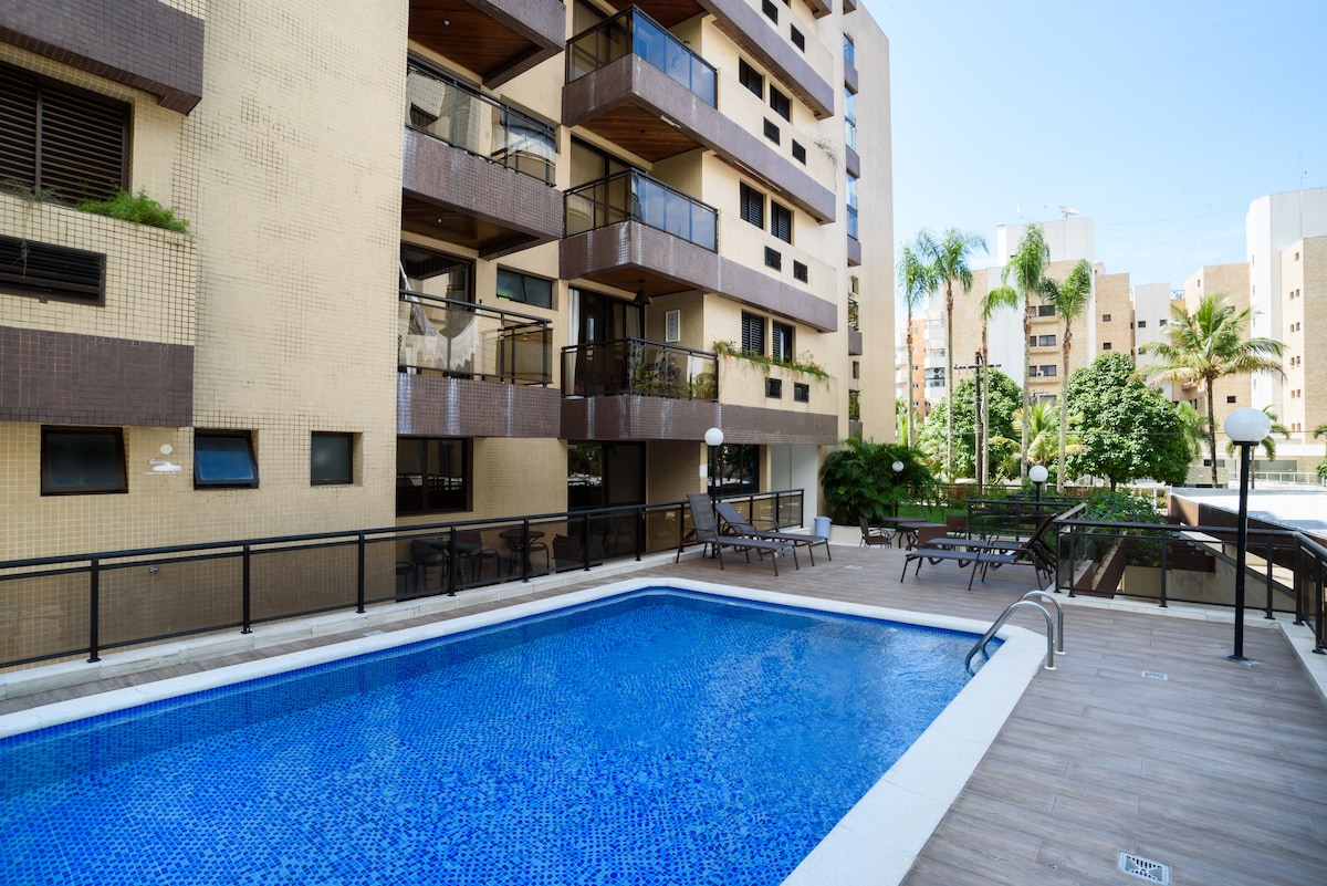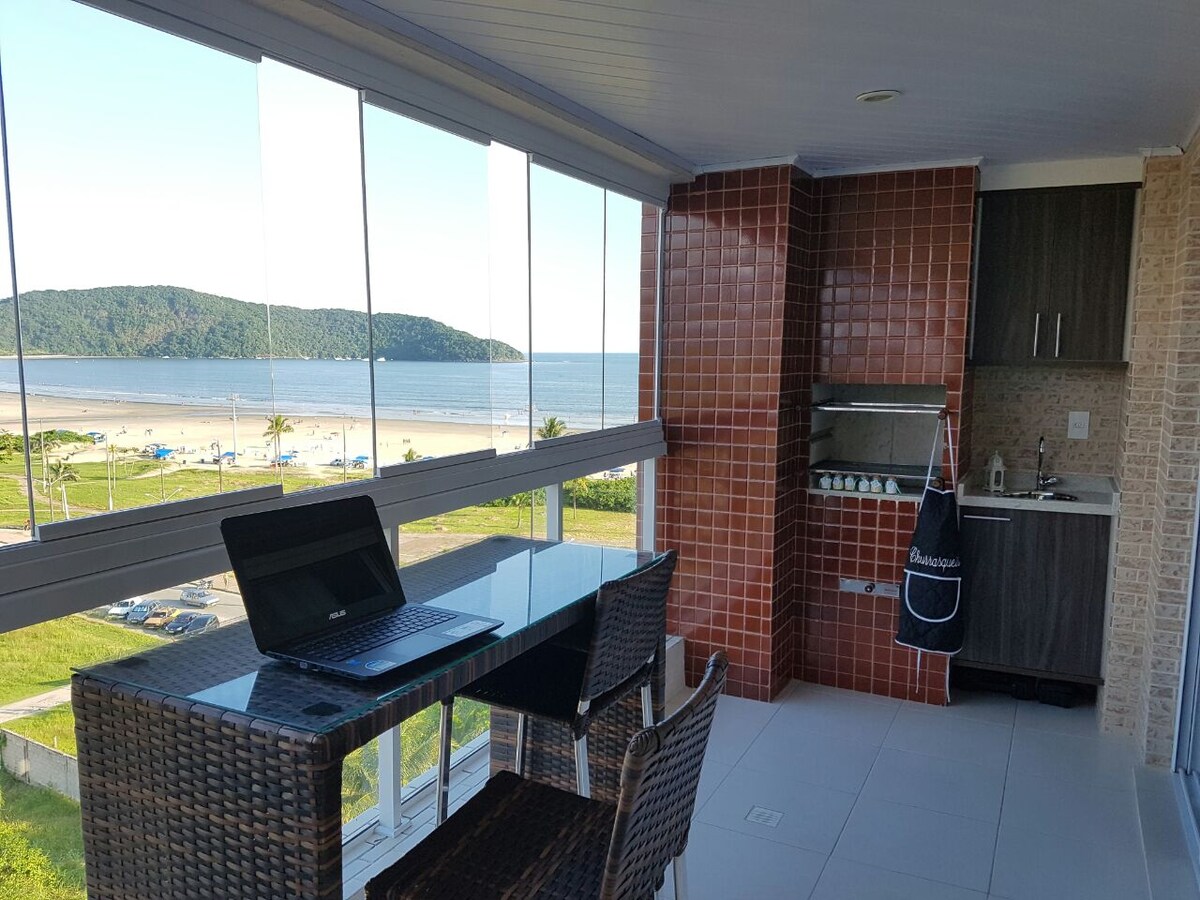 Apartamento a pie de playa, ubicado en Praia de Indaiá-Bertioga (a 4 km de la Riviera) super cómodo y agradable, con balcón de 270° con vista a todo el litoral de Bertioga y Serra do Mar, Balcón Gourmet y Barbacoa. 3 dormitorios, 1 suite, todos con aire acondicionado 3 televisores, uno de ellos inteligente, con Netflix, Sky y varias aplicaciones. WIFI, 300 mg 2 plazas cubiertas demarcadas ÁREA COMÚN: -Piscina -Espacio Kids -Playground -Cine -Sauna -Gimnasio -Salón de fiestas con espacio gourmet - área de lectura