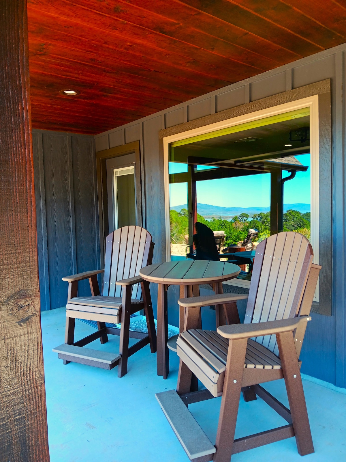 Este elegante y espacioso estudio abierto es el espacio perfecto para dos personas que esperan una escapada privada con vistas al lago. Una lujosa cama tamaño queen, bañera de hidromasaje, chimenea, aire acondicionado, cocina pequeña y baño completo y elegante estarán a tu alcance. Totalmente amueblado de arriba abajo, lo que permite llevar poco equipaje. Una pared de cristal completa captura todo el lago desde la cima de la cresta. Asa a la parrilla en el patio aislado y experimenta tu propia puesta de sol única. Siéntate junto a la fogata para desconectar.