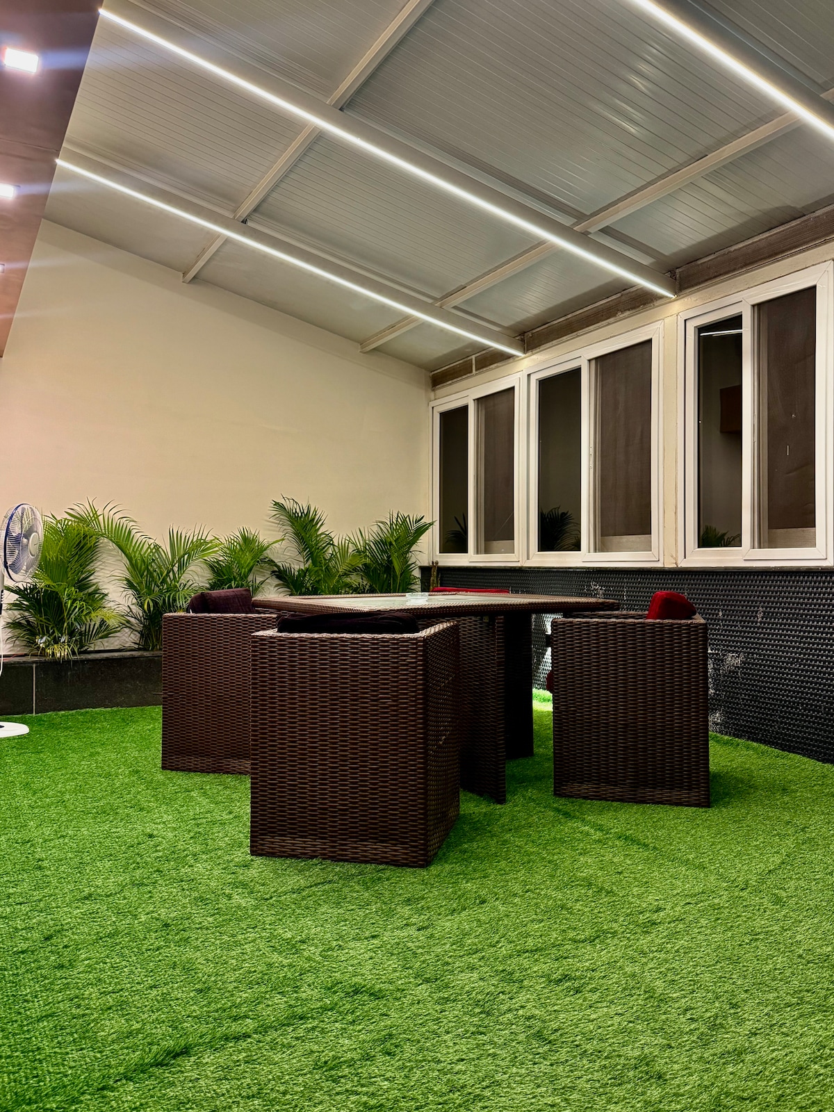 Entra en el lujo en Gardenia Home, ubicado en el exclusivo vecindario de Domlur. Mezclando perfectamente el diseño contemporáneo con el lujo, este espacioso refugio es ideal para familias, amigos o grupos que buscan una escapada serena pero indulgente. A solo 2 minutos en auto de la carretera de 100 pies de Indiranagar, este apartamento con jardín privado es el más adecuado para grupos de 2-4 huéspedes. Cuenta con 2 hermosas habitaciones con 2 baños privados no anexos, junto con una encantadora sala de estar y comedor y una cocina bien equipada.