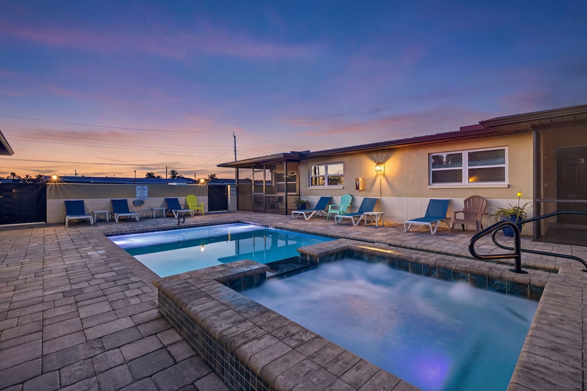 Disfruta de la puesta de sol en nuestro tranquilo oasis de Fort Myers. Adéntrate en un refugio de comodidad y serenidad, donde cada detalle se adapta a tu máxima comodidad. Sumérgete en el entretenimiento sin esfuerzo con televisión por cable premium, completa con Hulu, y mantente conectado sin problemas con nuestro wifi de alta velocidad. Tanto si estás poniéndote al día con el trabajo como si simplemente quieres relajarte, nuestro espacio de trabajo dedicado ofrece el ambiente perfecto para la productividad y la relajación.