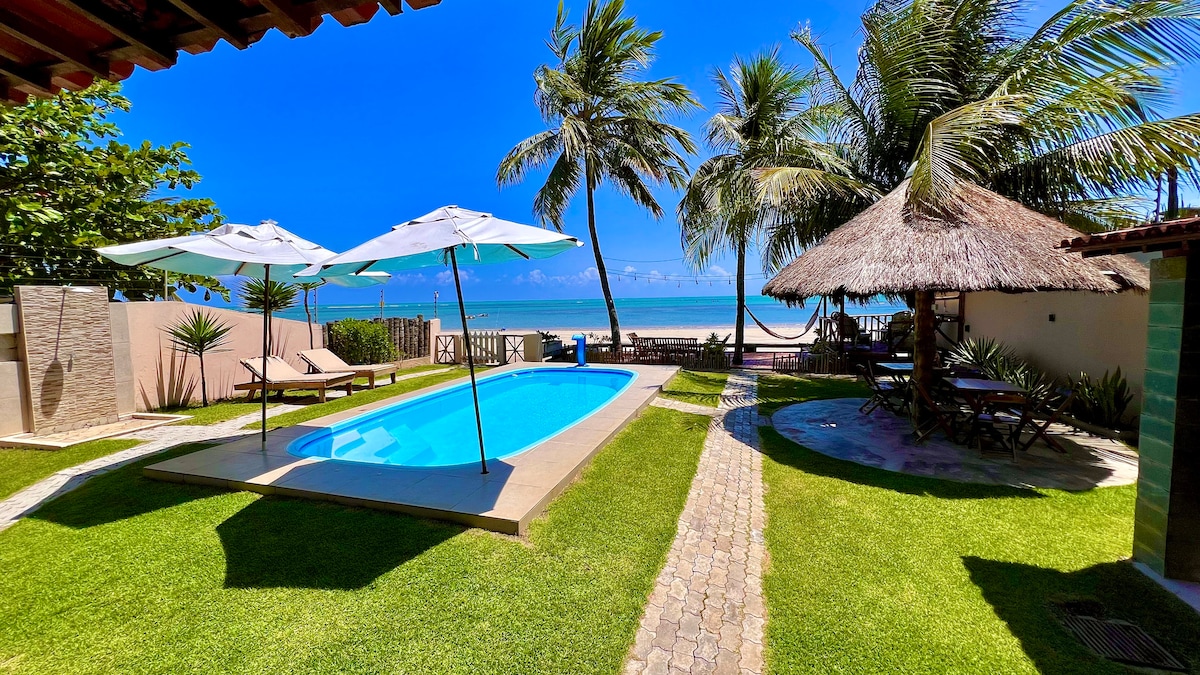 Casa dúplex en la arena en Ipioca, con piscina privada Igui, barbacoa y vistas al mar. Hay 3 dormitorios con aire acondicionado y armarios grandes (1 suite), 3 baños, salón, balcón y espacio de oficina en casa. Decoración de diseño, ajuar de calidad y mucho confort. Cocina completa equipada con todos los utensilios, incluida AirFryer. Smart TV, wifi rápido y garaje cubierto para 1 coche. Una playa paradisíaca y tranquila, con piscinas naturales a las que se puede llegar a pie o en barco.