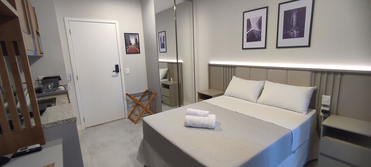 Cerque-se de estilo neste espaço excepcional. Studio completo, com piscina e academia no rooftop, lavanderia e prôximo a farmácias, mercados. 250 metros do metrô , um shopping com restaurantes, cafés, e lojas no terreo do predio, localização priveligiada. Comporta até 3 pessoas. É proibido fumar no local. Com ar condicionado wifi, TV, cafeteira nespresso e toda estrutura e conforto necessário para curta e longa estadia. Estacionamento particular do shopping