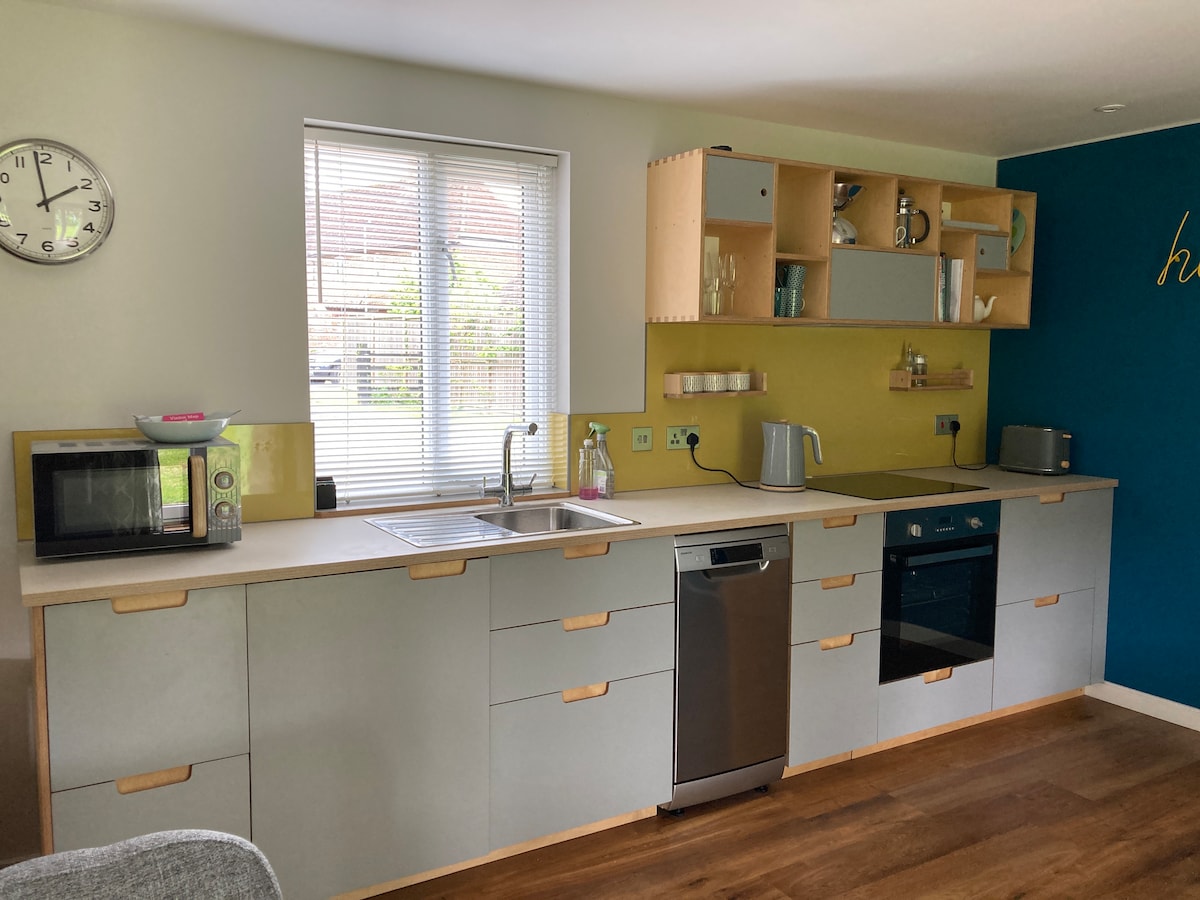 Apartado, pero a poca distancia a pie de la colina del mercado y del castillo de Framlingham, a solo 25 minutos en coche de la costa. Nuestro anexo de la planta baja recientemente convertido tiene un ambiente retro-escandinavo que comprende un dormitorio doble con baño con ducha y sala de estar con sofá cama y cocina equipada a medida. Los huéspedes podrán hacer uso de parte del jardín orientado al sur y el estacionamiento para un vehículo está en una entrada compartida.