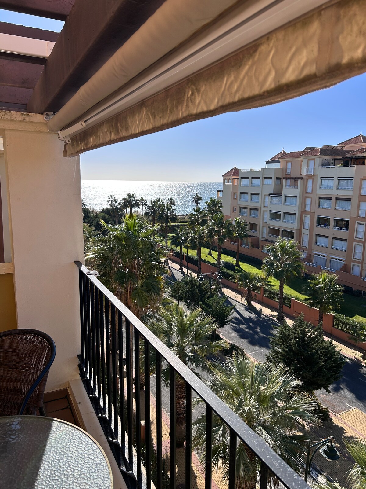 Magnífico piso de playa a tan solo 10 minutos de las playas de Isla Canela, rodeado de un campo de golf. Este piso con capacidad de hasta 6 personas dispone de una gran terraza de 25 m2 con vistas al río Guadiana y a la Urbanización Costa Esuri. El apartamento dispone de 2 dormitorios, uno de ellos tipo Suite con cama Queen Size y baño dentro de la habitación, 1 habitación con 2 camas individuales, un baño completo adicional, cocina, salón-comedor con sofá cama de matrimonio y una gran terraza.